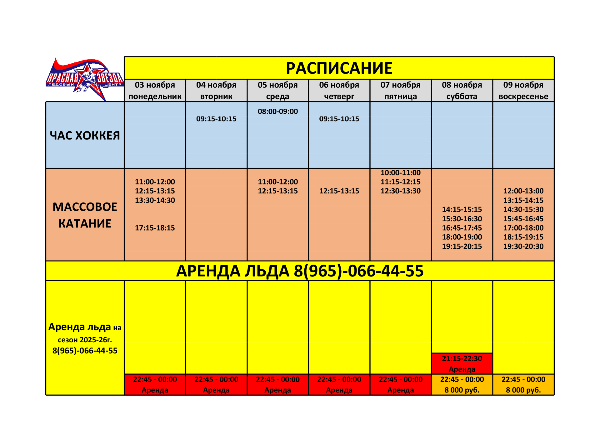 РАСПИСАНИЕ ЗАГРУЖЕННОСТИ СПОРТИВНОГО КОМПЛЕКСА "КРАСНАЯ ЗВЕЗДА"